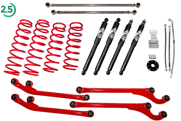 60mmアップコイルとモンローロードマチックショックに加えて、リーディングアームなどを含む本格的なキット。