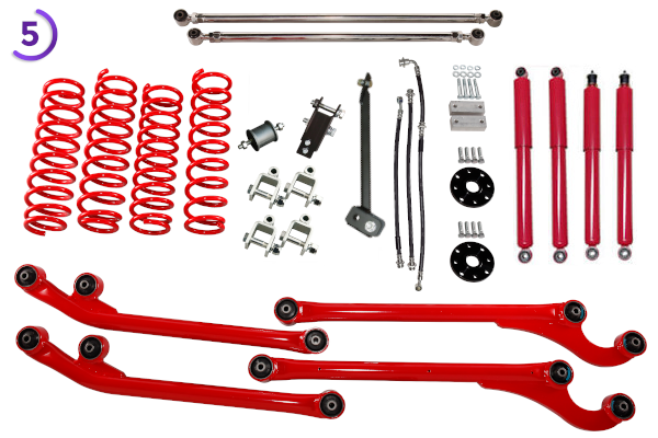 前後アームやラテラルロッドダウンブラケットなど補正部品が全て揃った贅沢仕様!