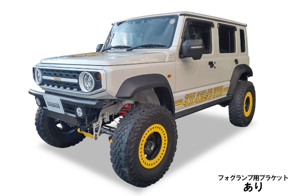 フォグランプ用ブラケットはオプション品としており、用途に合わせて選択いただけるようにしました。オフロード走行やシンプルさを重視する場合にはフォグランプなしを推奨。視界不良時の安全性やフロント周りの主張を強めたい場合にはフォグランプありがおすすめです。